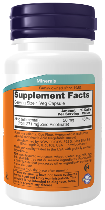 NOW Zinc Picolinate 50 mg, 60 капсул