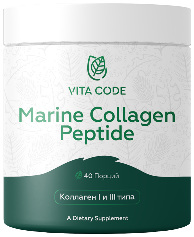 С возрастом выработка коллагена уменьшается, и именно из-за этого появляются морщины, уменьшается эластичность кожи, волосы делаются тусклыми и ломкими. С помощью Vita Code Marine Collagen недостаток коллагена легко восполнить и предотвратить появление морщин. Кроме того, коллаген борется с образованием целлюлита, укрепляет ногти и суставы.