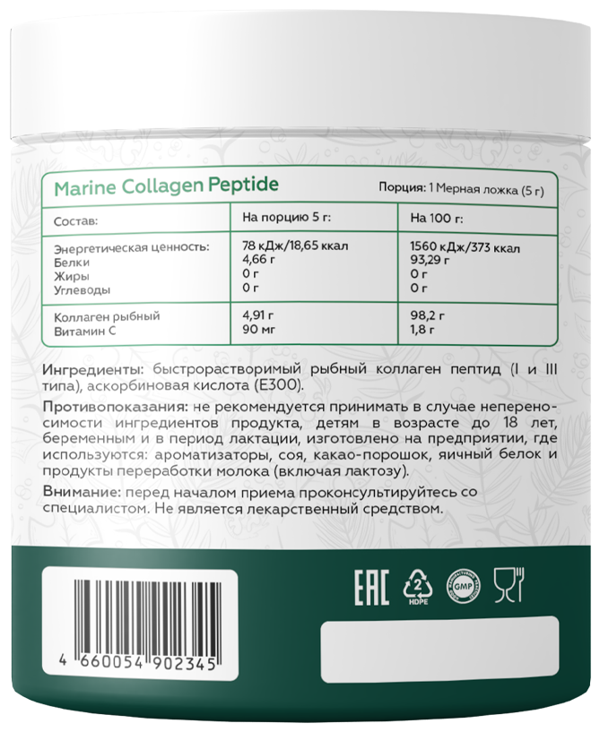 Marine Collagen - один из самых эффективных в усвоении видов коллагена, так как его структура почти идентична с человеческим коллагеном. Это вещество, которое используется организмом как строительный блок при создании соединительных тканей.