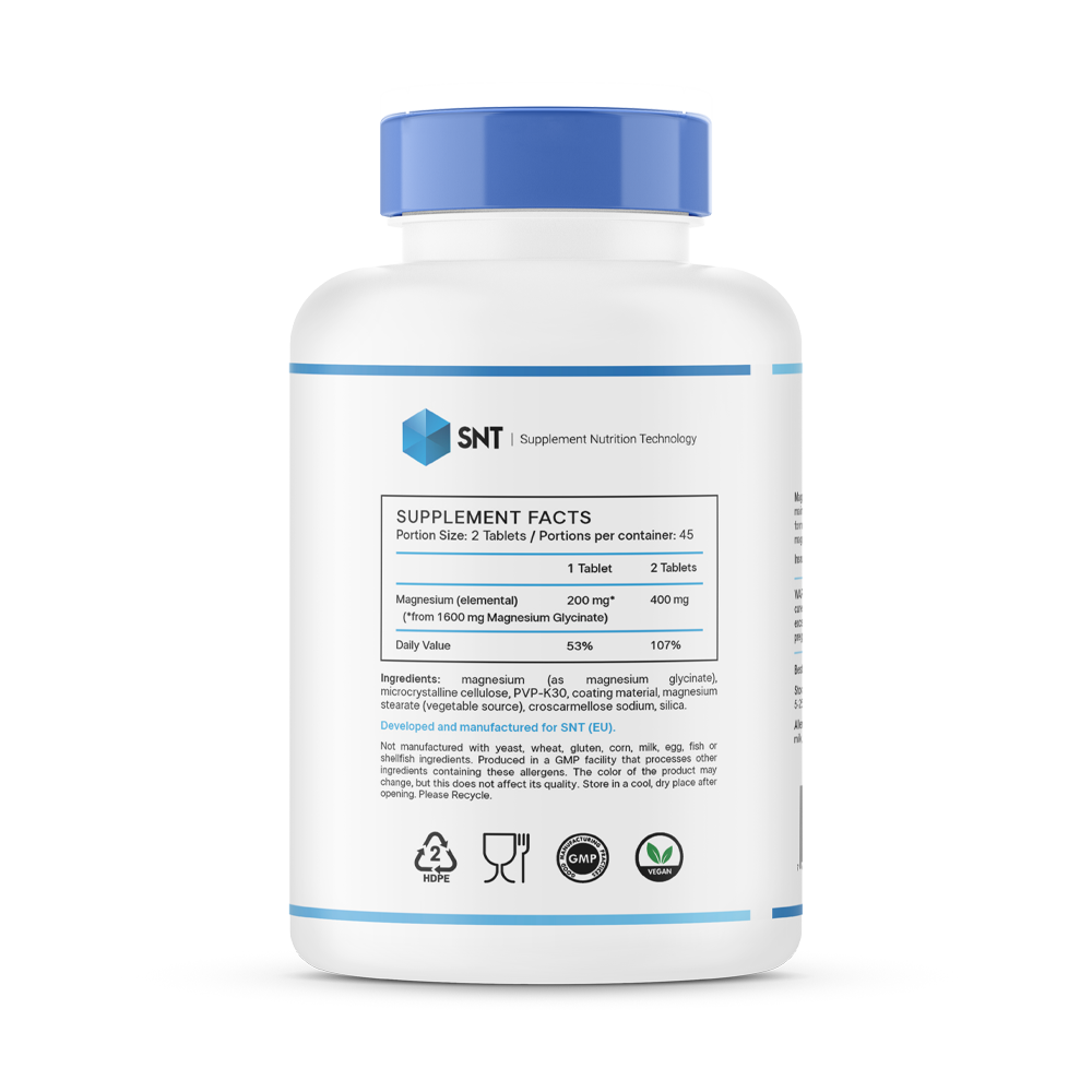 Magnesium Glycinate - это препарат магния, который обладает высокой биодоступностью и хорошо переносится организмом. Дополнительный прием поможет вам нормализовать сердечный ритм, снизить АД, купировать судороги в мышцах, повысить жизненный тонус и настроение, умственную и физическую активность, уменьшить боли в суставах.