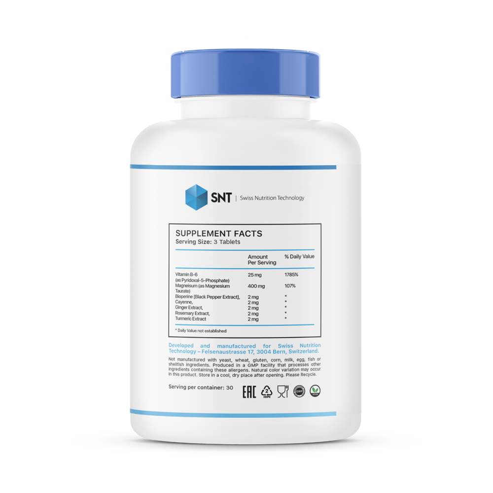 Таурат магния - хелатная форма магния и аминокислоты таурина. Вместе они являются отличными помощниками в снижении кровяного давления и оказывают пользу для сердца.Magnesium Taurate разработан с соблюдением всех стандартов качества. Добавка состоит не только из этих двух полезных компонентов,но и включает в себя другие важные витамины и микроэлементы, такие, как: витамин В-6, экстракт черного перца, паприка, корень имбиря, экстракт розмарина и куркумин, которые в комплексе положительно влияют на весь организм. Магний таурат обеспечивает защитные функции мозгу, сердцу, глазам и даже мышцам. Этот комплекс помогает предотвратить аритмию и образование тромбов.