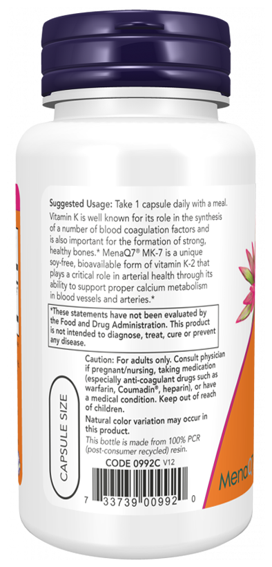 MK-7 Vitamin K-2 - это биодоступная и безопасная добавка для ежедневного укрепления здоровья. В ее основу положена легкоусвояемая форма витамина K2, запатентованная под названием MenaQ7. Она эффективней большинства аналогов, быстрее и полноценнее метаболизируется организмом. Благодаря этому, вы получаете еще больше пользы из каждой порции, не опасаясь побочных эффектов.