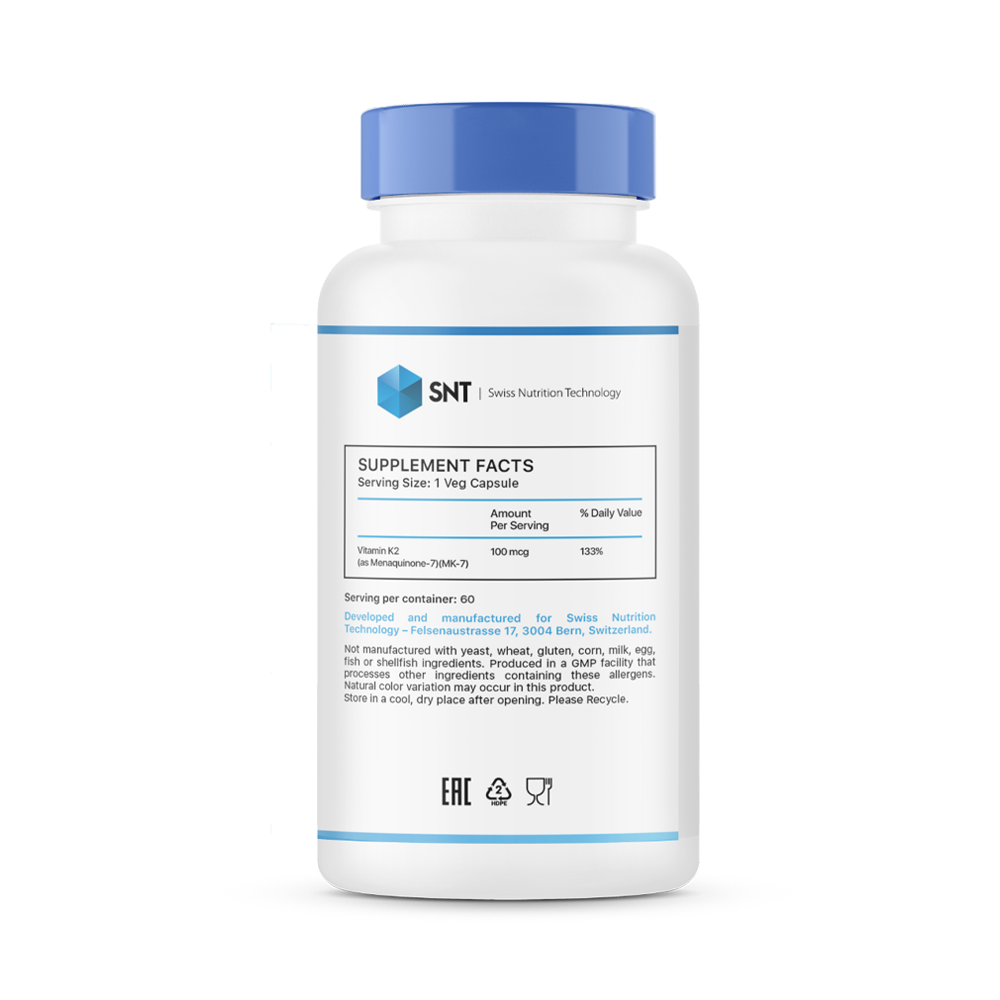 Известно, что витамин К отвечает за синтез нескольких факторов свертывания крови и формирование сильных, здоровых костей. Vitamin K2 MK7 - это уникальная биодоступная форма витамина К2 без сои, которая играет ключевую роль в поддержании здоровья артерий благодаря своей способности обеспечивать правильный обмен кальция в кровеносных сосудах и артериях.